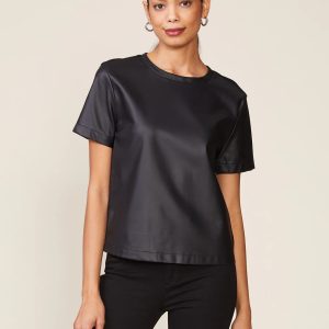 Black Vegan Leather Front Tee$58.00