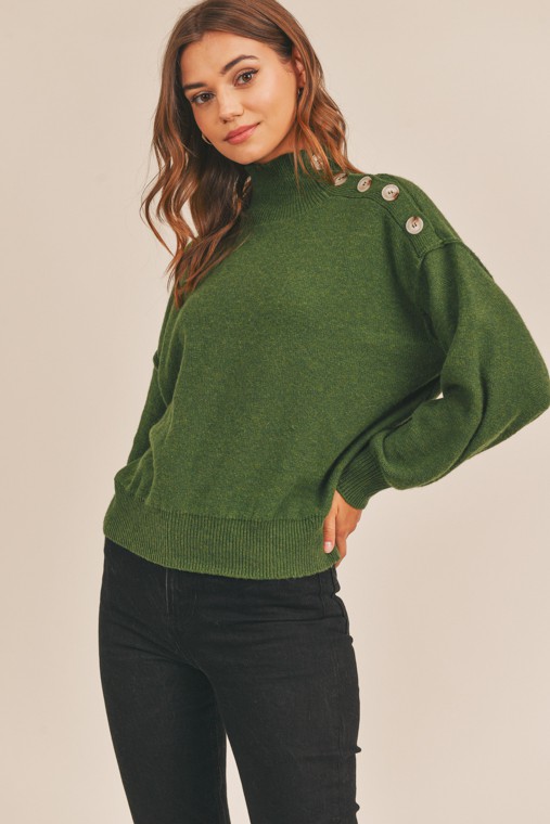 Green button shoulder sweater