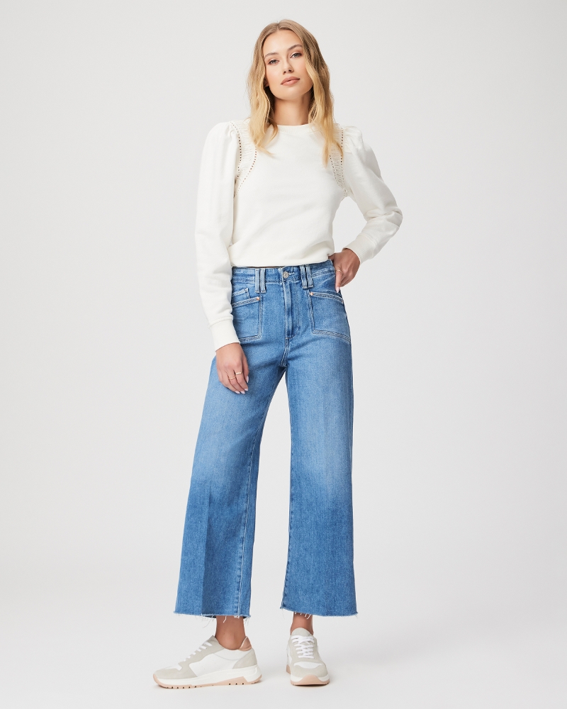 Rise: 11 7/8″ Inseam: 27″ Leg Opening: 22 1/2″ 93% Cotton, 5% Polyester, 2% Spandex