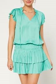 / Aqua pleated tier dress