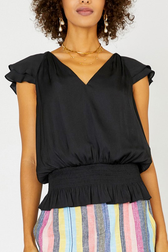 / Black flutter/ smock waist top