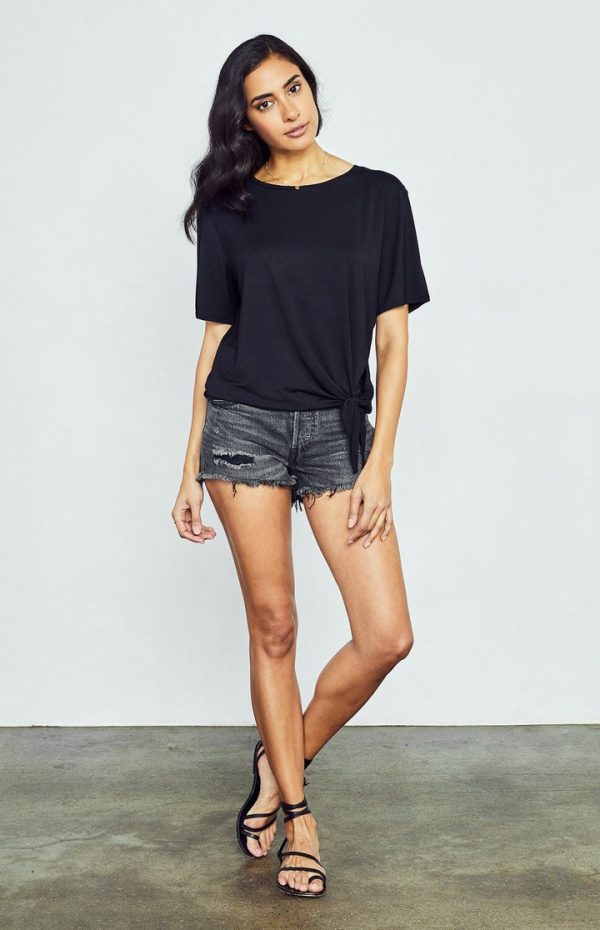 Made of super soft rayon jersey, the Renata is a scoop neck t-shirt with a tie detail at the hem.