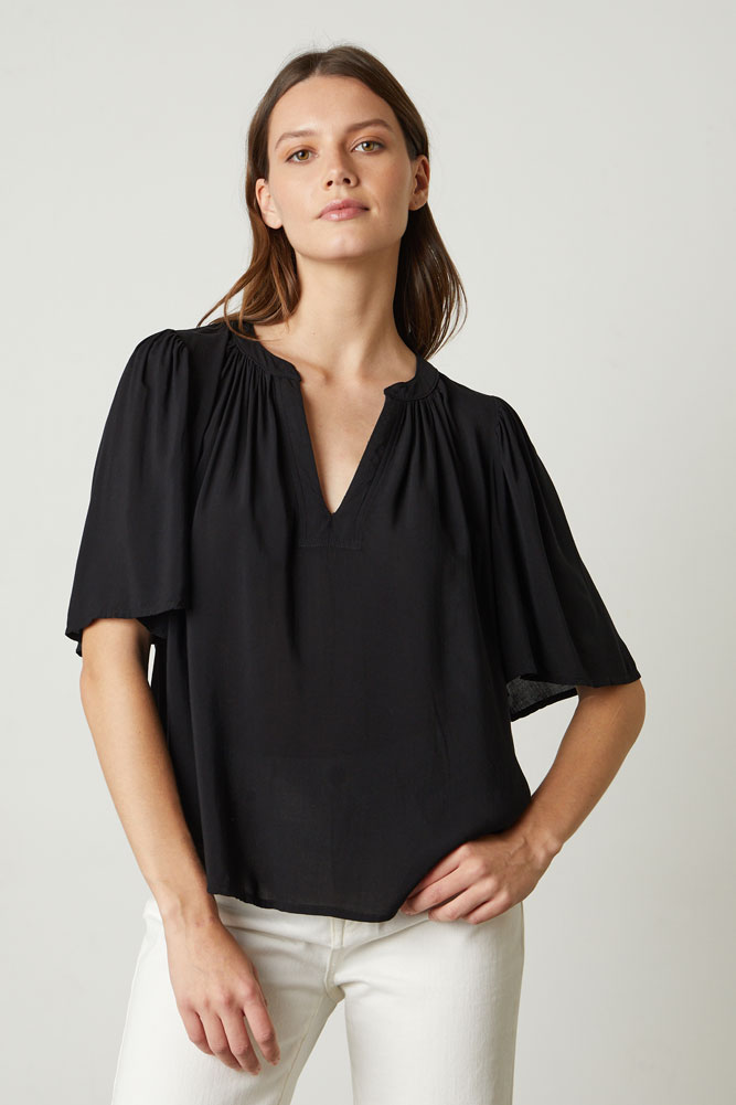 Black v neck flutter sleeve