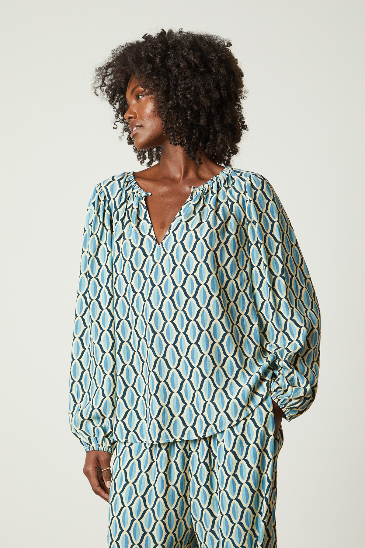 Blue/cream geometric top