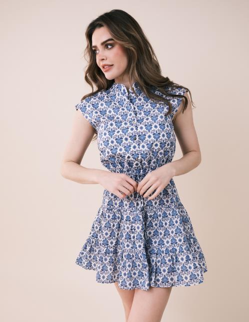 / Blue floral tie waist dress