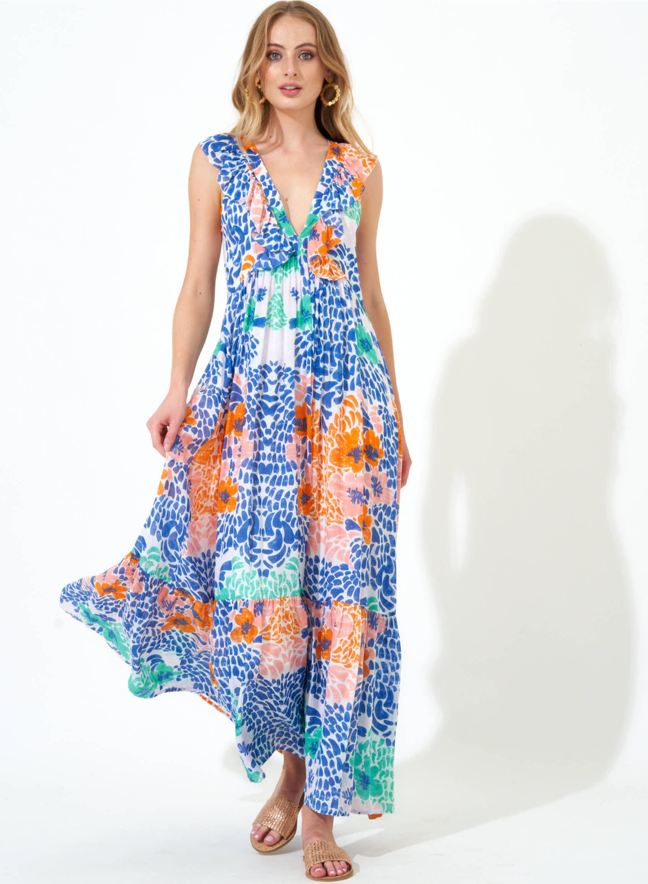 JS71 Wyatt Olive And Cream Mixed Media Dress