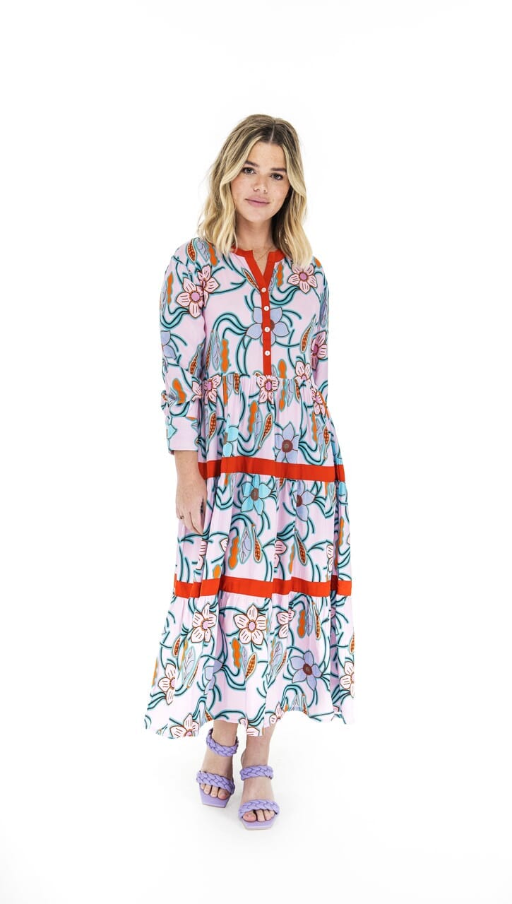 Blue pink tiered floral dress
