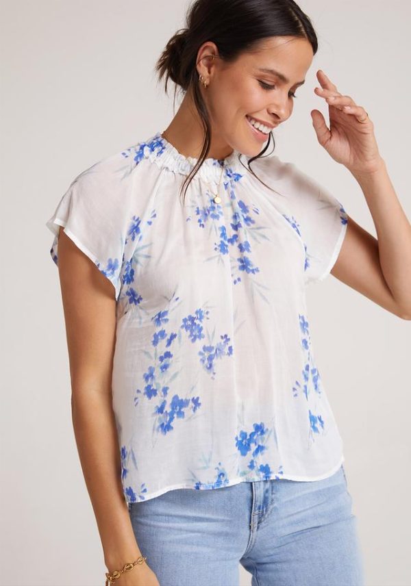 Elasticized ruffle neckline