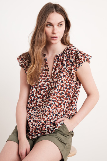 100% cotton Elastic around neckline Single button closure at neckline