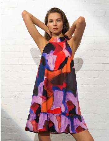 Bella Dahl Moroccan Palm Print Dress Brown White Print