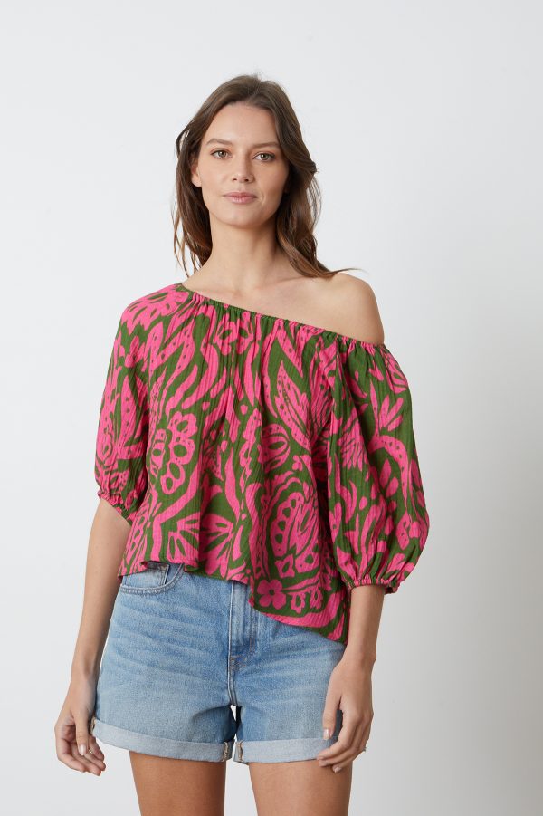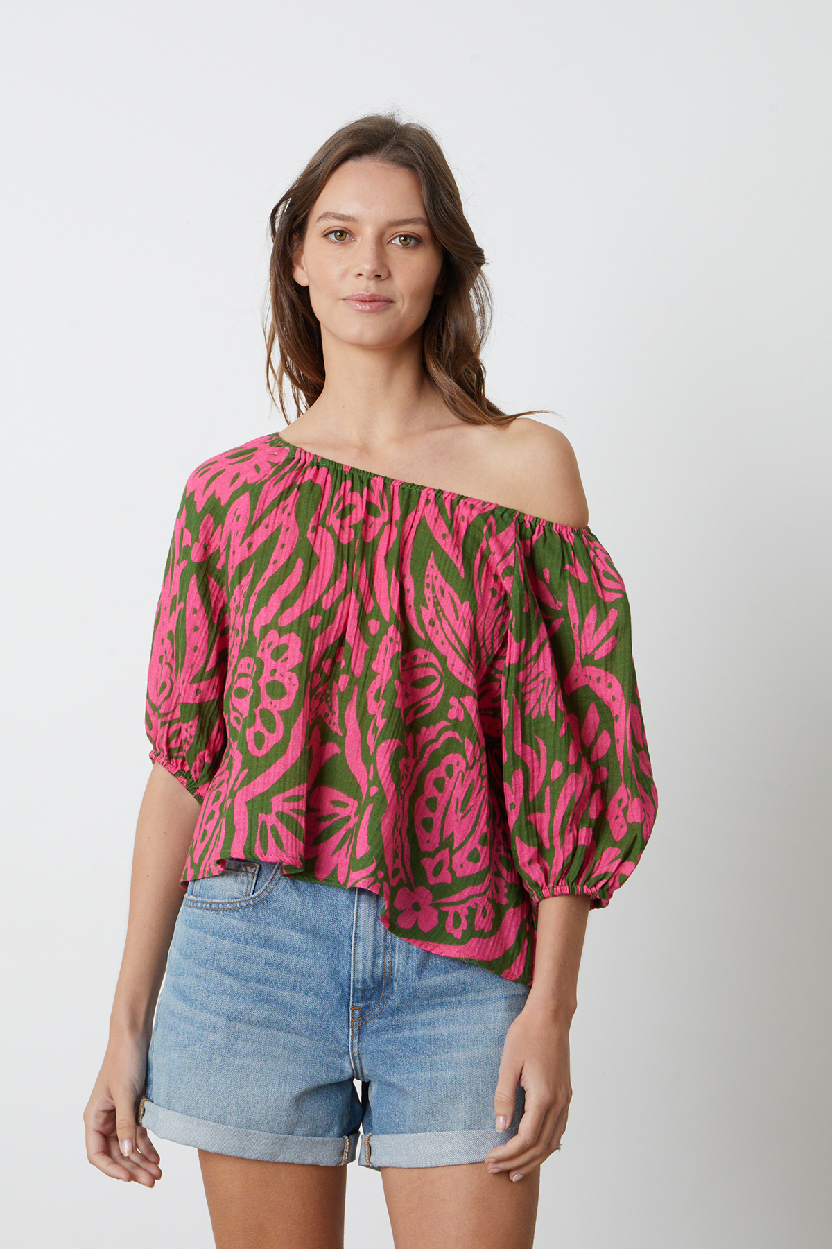 100% cotton. Loose fit. On or off the shoulder. Hand wash cold.