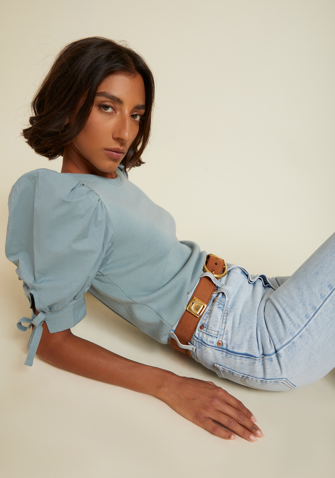 / Dusty blue combo tie sleeve