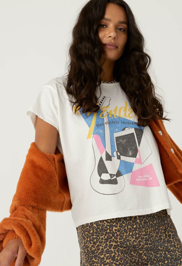 100% cotton. Slightly shrunken fit. Size small measures 19 3/4″ and length is 22″.