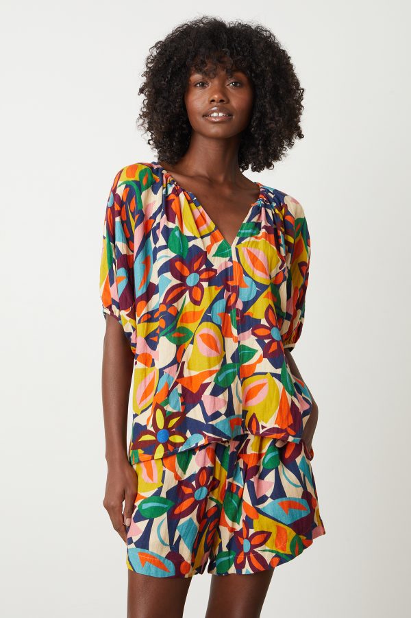 55% viscose, 45% linen. Loose fit. Hand wash cold.