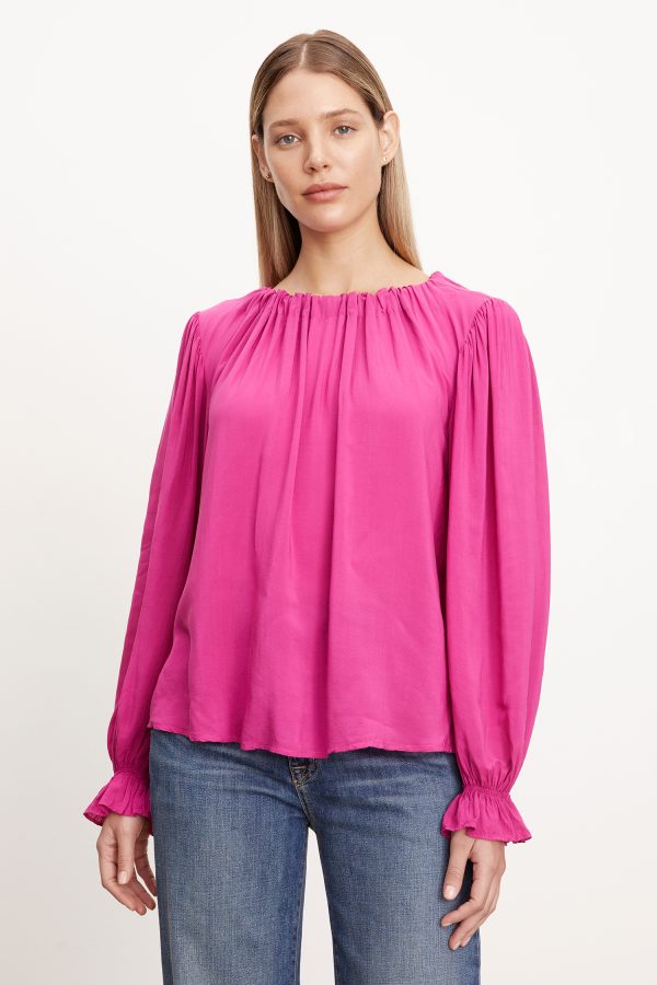 fuchsia ruffle sleeve w/ tie