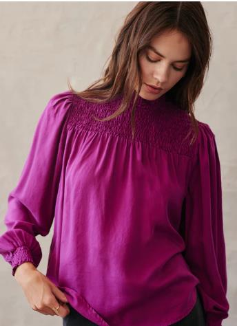 Fuchsia smocked front top