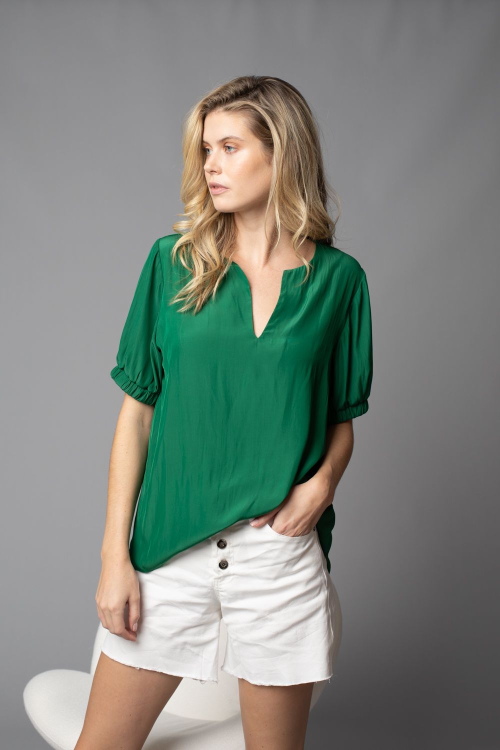 / Grass satin elastic cuff top