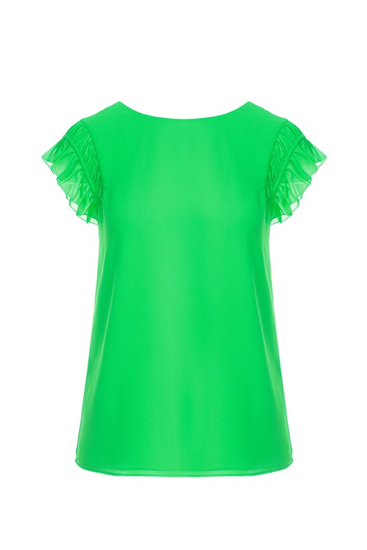 green ruffled sleeve top