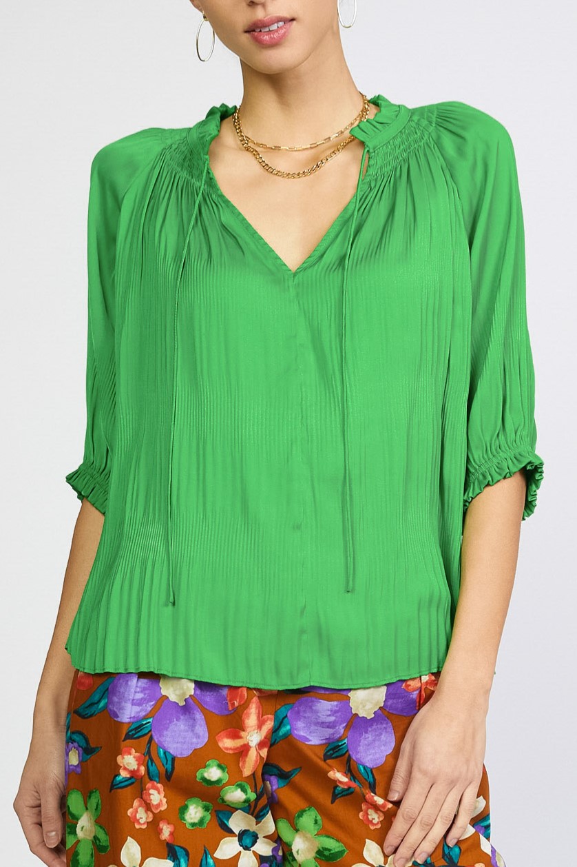Green s/s tie front top