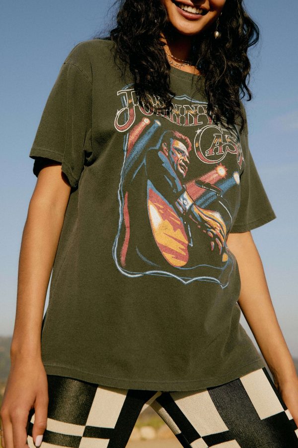 100% cotton. Loose fit. Size small measures 19″ in width & 25″ in length. Wash cold.