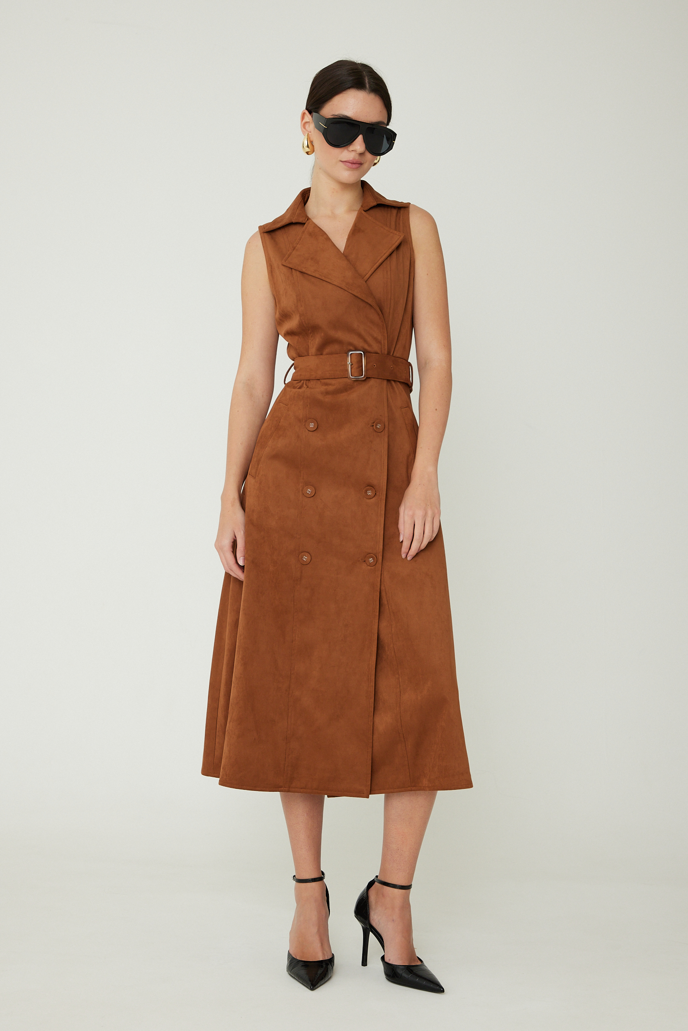 Js 71 Mae Ultra Suede Double Breasted Maxi