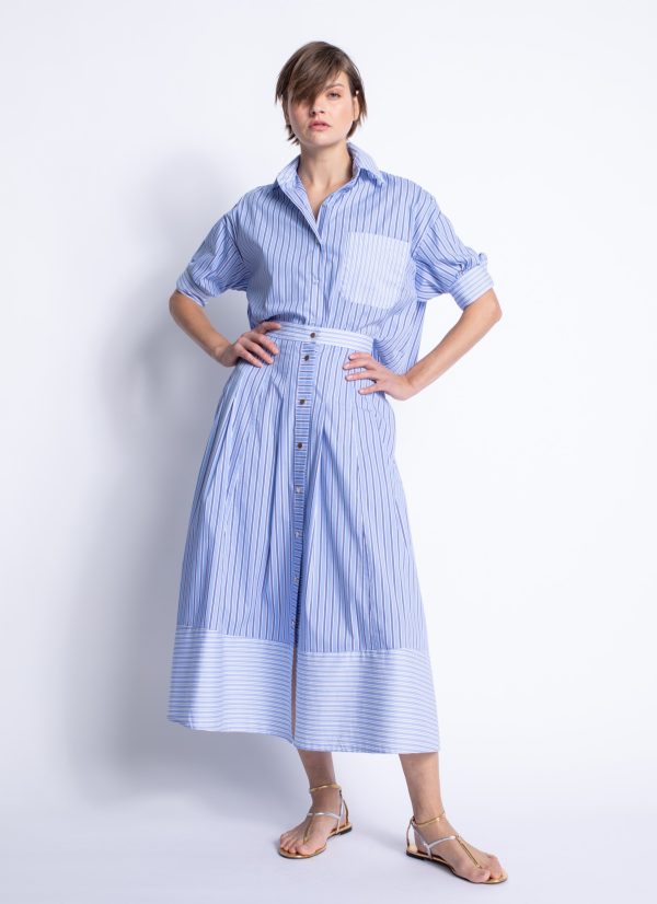 / Karina Grimaldi Malaga Stripe Skirt Blue Stripes