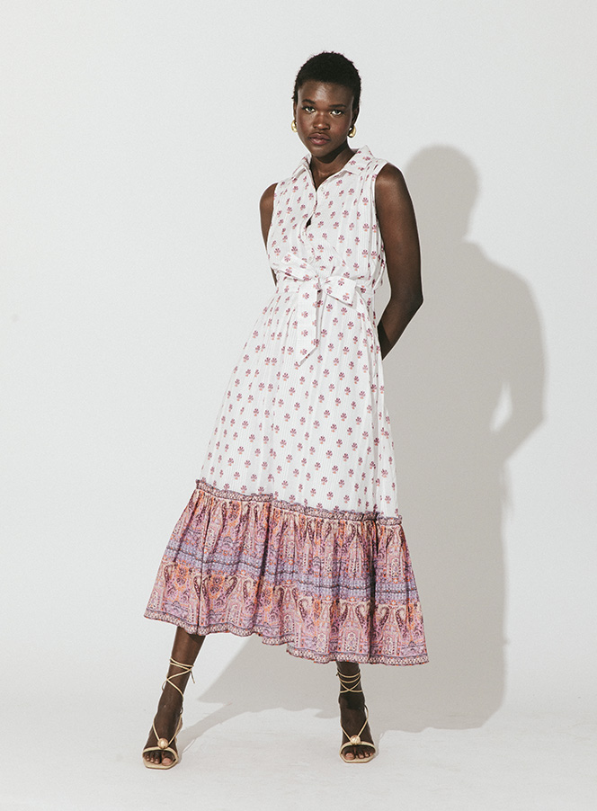 Bella Dahl Moroccan Palm Print Dress Brown White Print