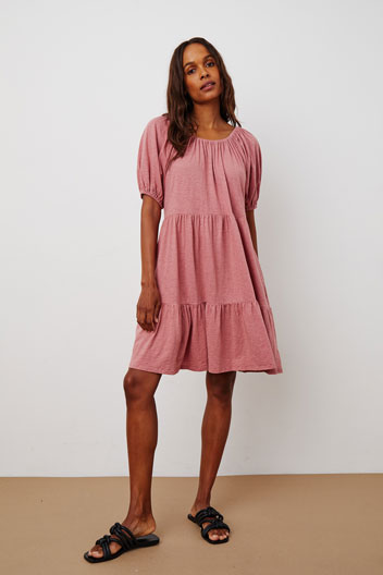 mauve peasant knit dress