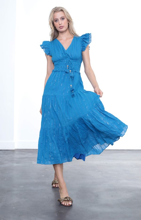 97% polyester, 3% lurex. Hand wash cold, or dry clean. Runs true.