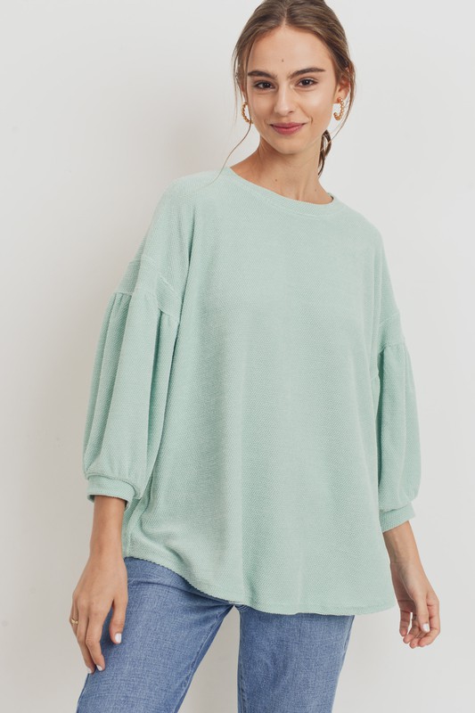 / MINT 3/4 BALLOON SLEEVE WAFFLE