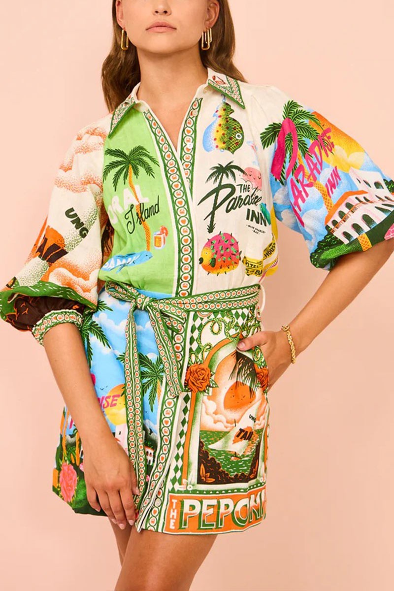 100% polyester. Slim fit. Size up. Hand wash cold.