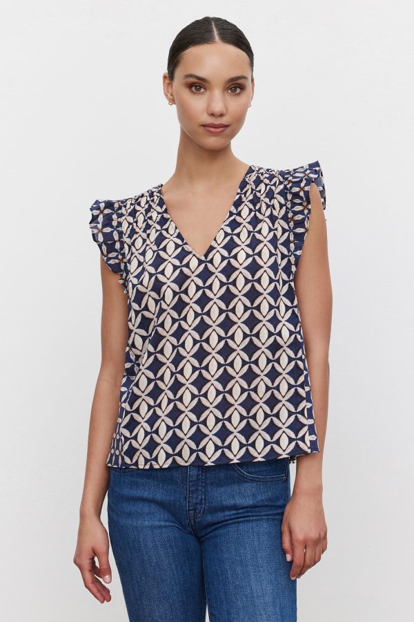 Navy block print flutter tank