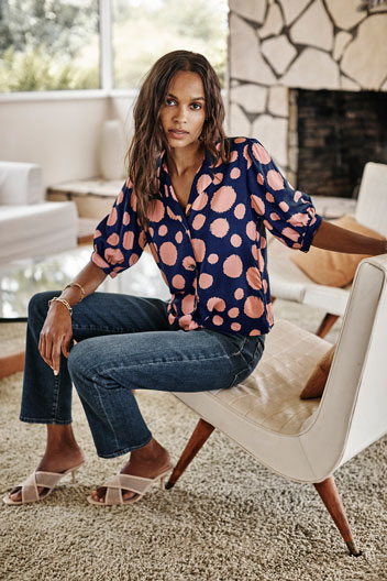 navy/pink dot blouse