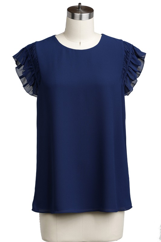 RUFFLED SHOULDER SHELL TOP WOVEN / 100% POLYESTER
