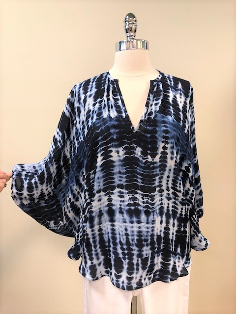 navy/white tie dye blouse