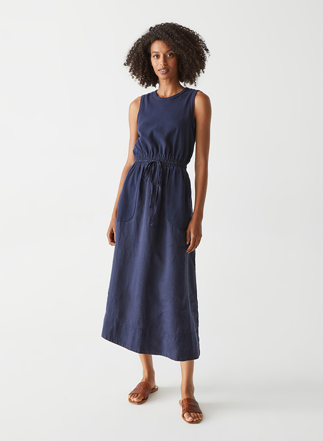 55% LINEN, 45% COTTON. True fit. Hand wash cold.