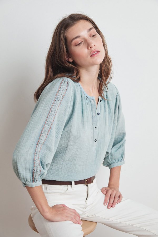 machine wash 100% cotton fabrication: lyon gauze embroidery button front scooped hemline