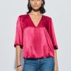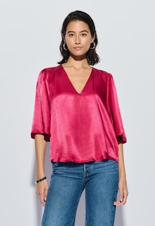 Raspberry satin v neck flutter