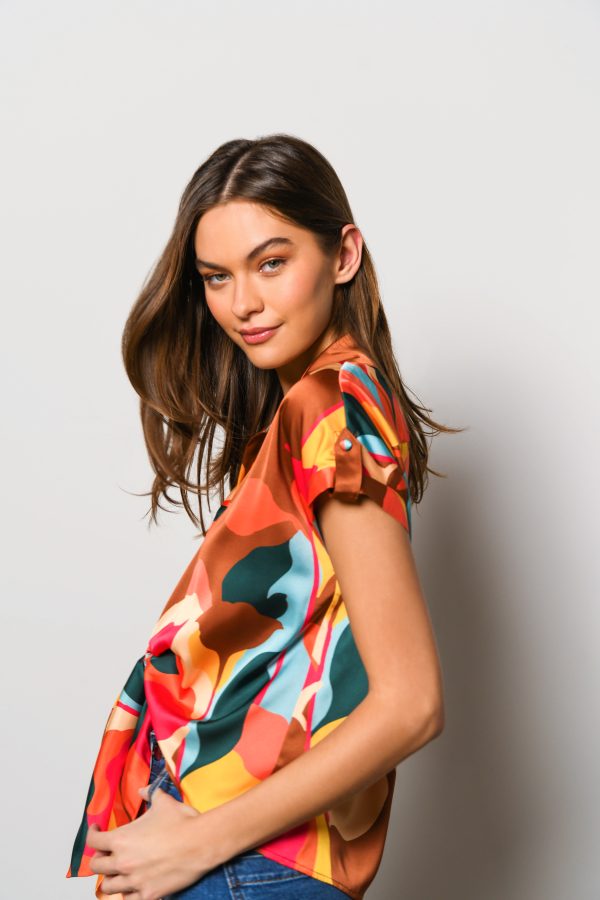 95% polyester, 5% spandex. Loose fit. Hand wash cold or dry clean.
