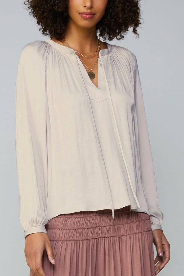 Tan tie front satin top