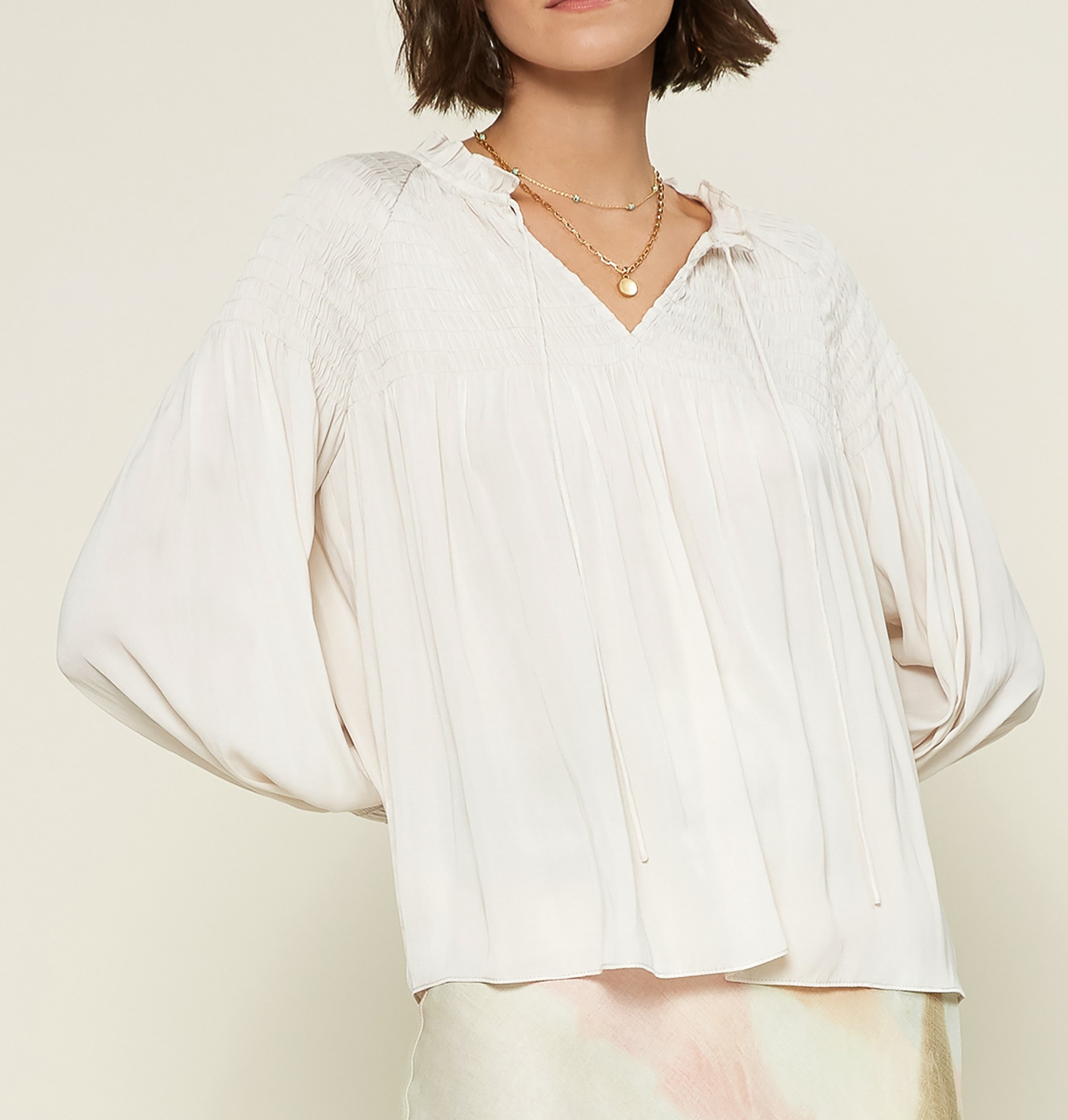 100% polyester. Hand wash cold, lay flat to dry. Runs full.