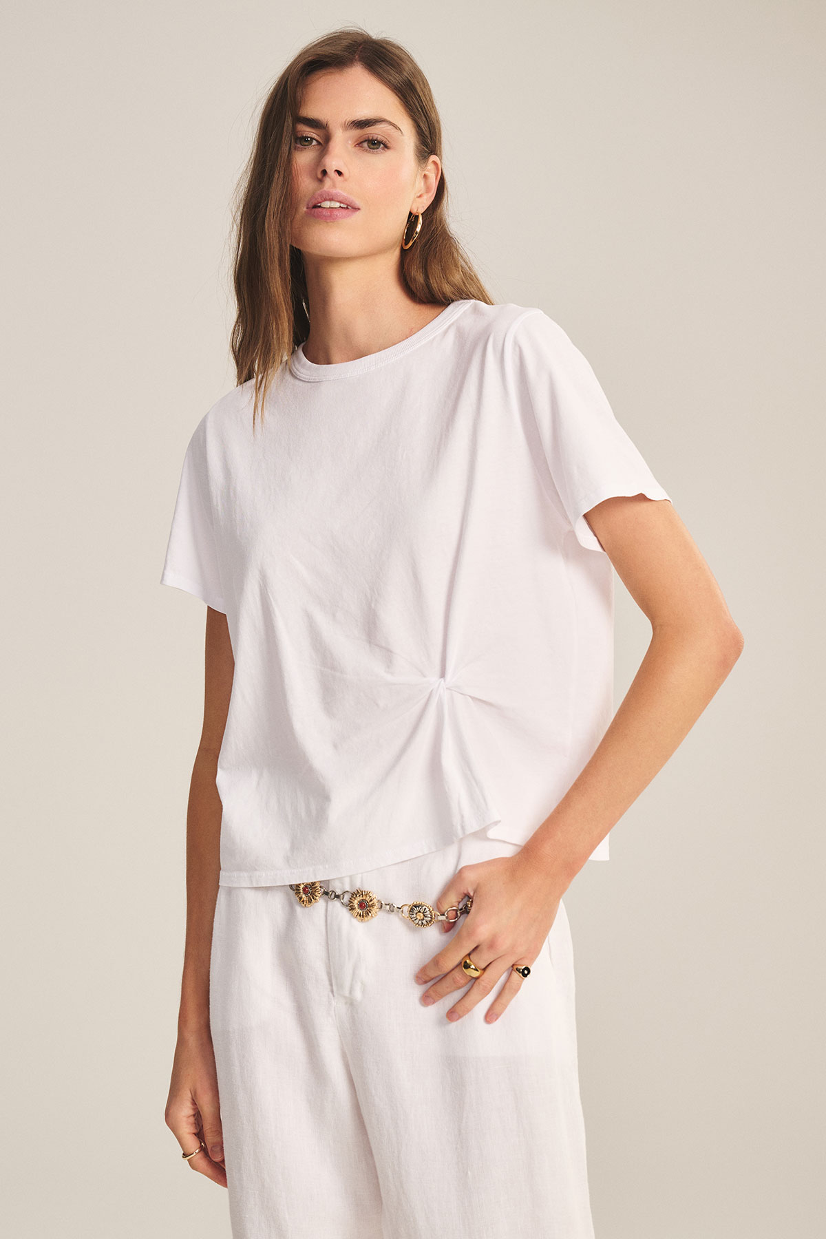 Velvet Rhou White S/s Knot Front Tee quantity
