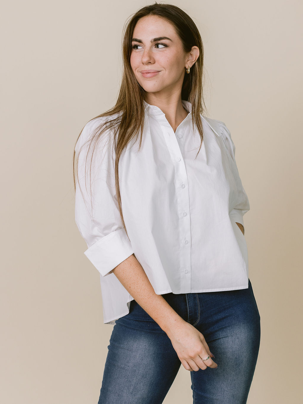 White button down high low