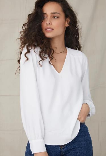 White smocked neck top